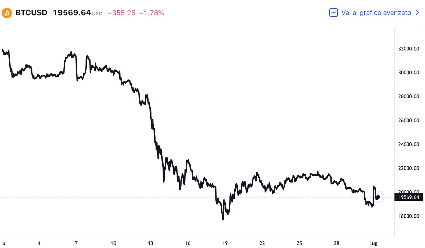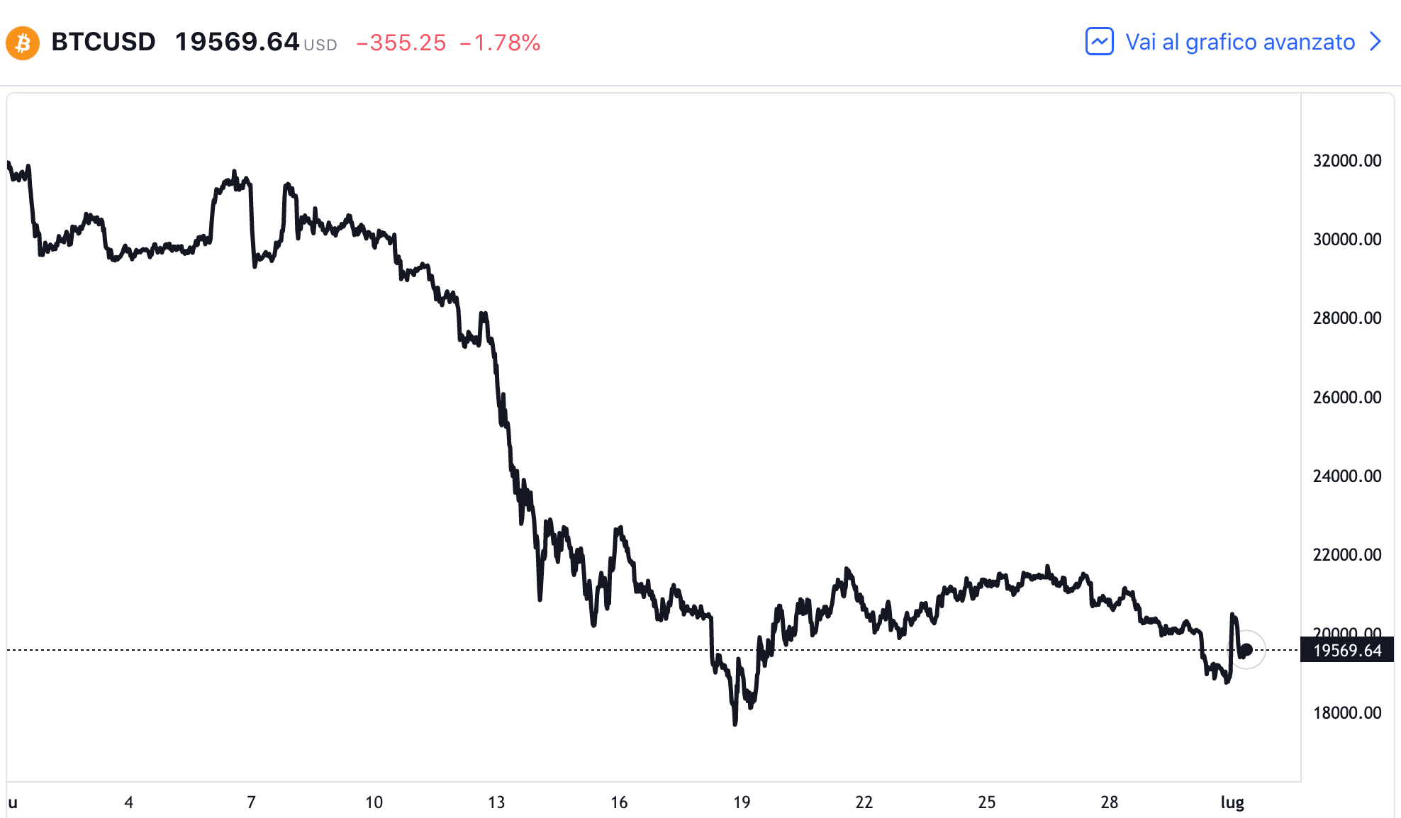 Oggi primo luglio Bitcoin ha un valore di circa 19.569 dollari.