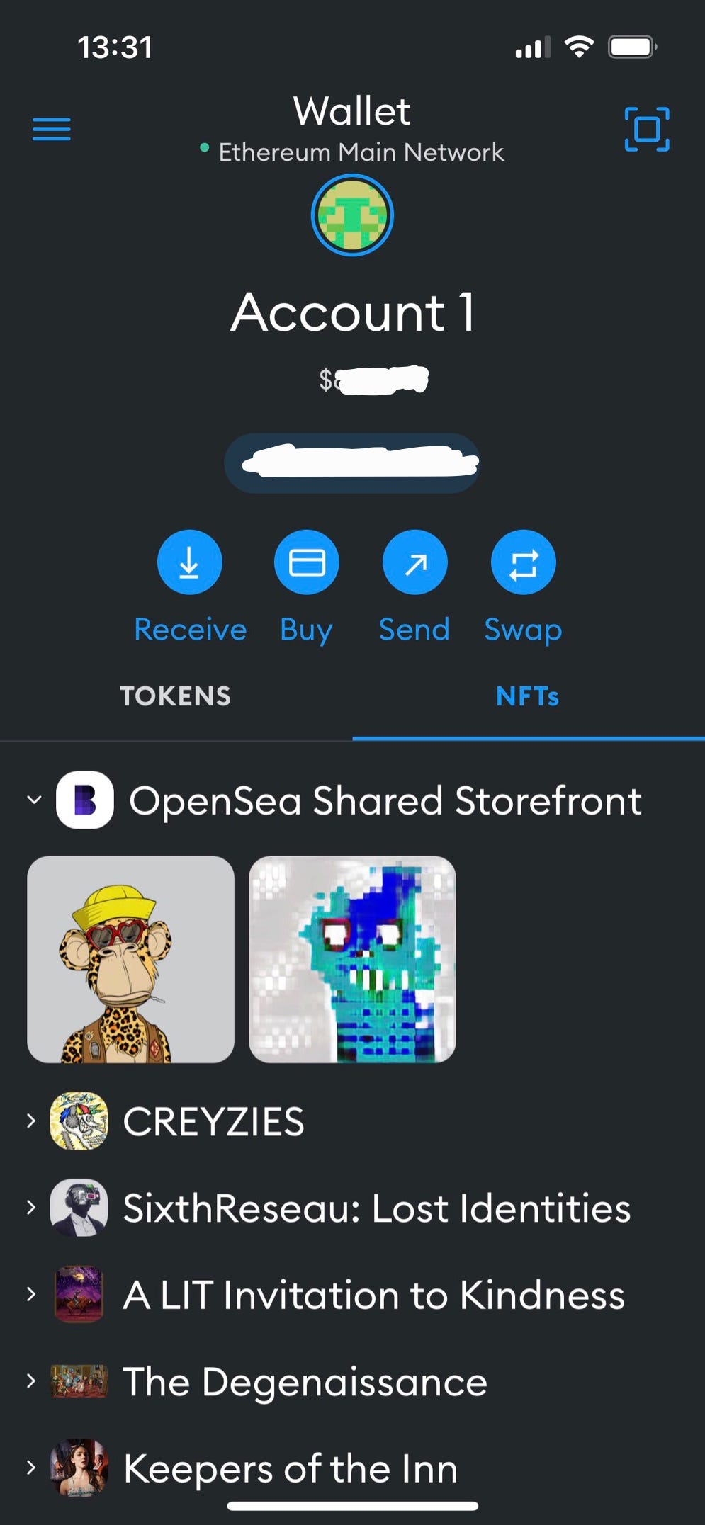 In ogni caso, ci vorrà un po’ di tempo prima che la Blockchain certifichi l’acquisto, ma poi il vostro NFT apparirà nella sezione NFT del vostro Wallet.