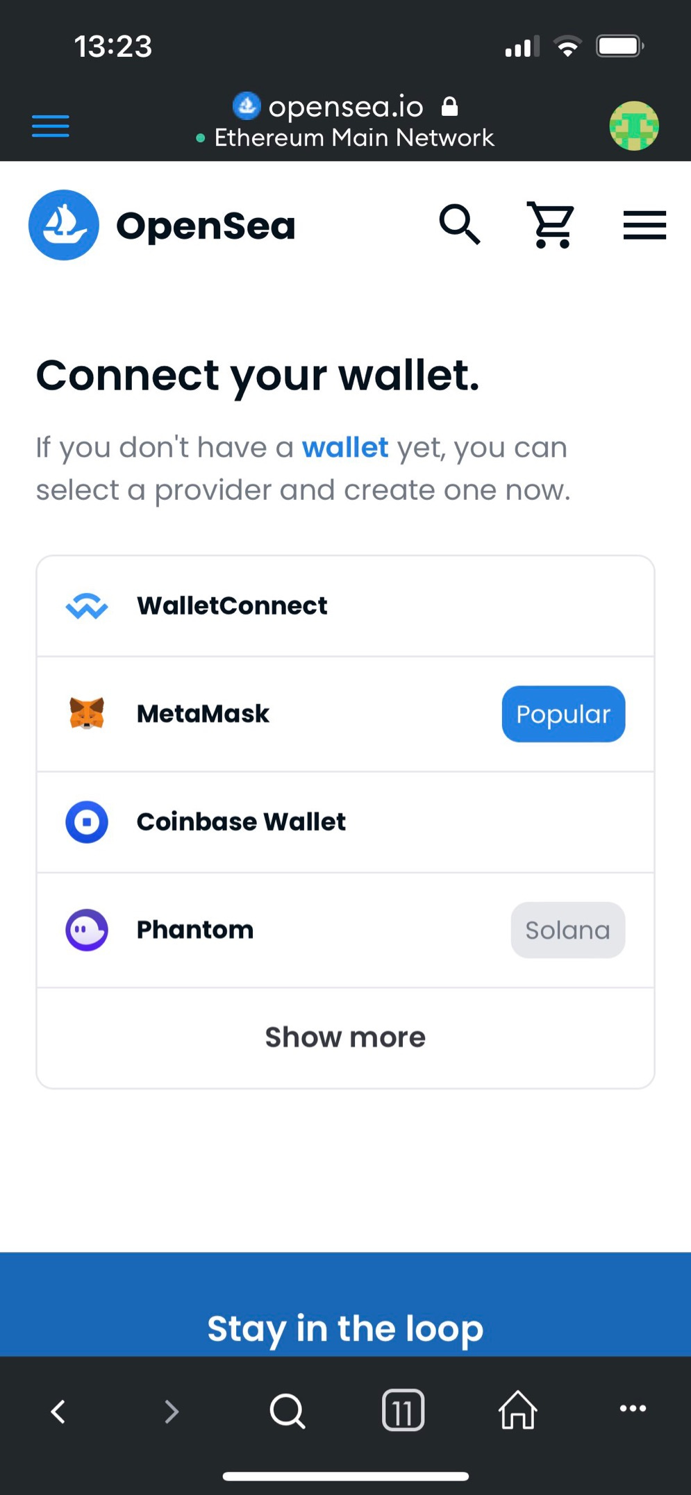 Aprite l’App di MetaMask, cliccate sulla sezione Browser e andate su Opensea.